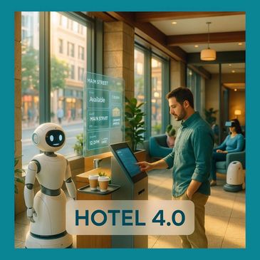Hotel 4.0 reshapes hospitality through empathy and efficiency. Guests are greeted by friendly AI concierges, explore destinations in VR, and enjoy seamless service powered by automation — freeing staff to focus on what matters most: human care.
