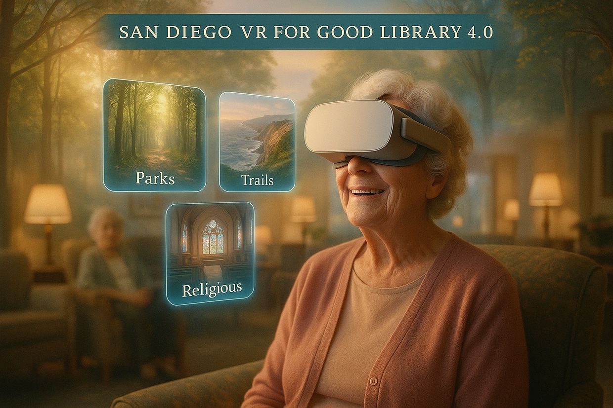 The San Diego 4.0 VR for Good Library is designed to help seniors feel seen, connected, and empowered through immersive 360-degree experiences. By capturing local places—parks, neighborhoods, faith centers, historic sites, even beloved family events—and turning them into immersive videos, the library gives seniors a way to stay emotionally close to the people and places that matter. It also supports mental sharpness, curiosity, and a deeper sense of belonging, especially for those isolated by health, mobility, or distance.